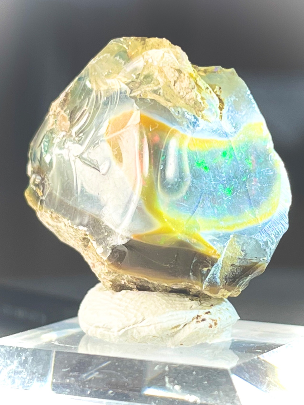 クリスタルオパールとは現地での名称で、水分量が多くクリアーものをそう呼びます。